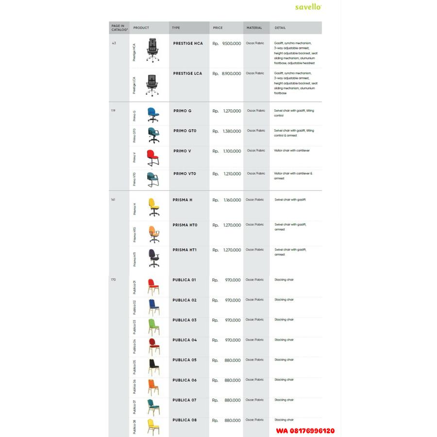 Kursi Kantor Savello PRESTIGE HCA LCA, PRIMO G GTO V VTO, PRISMA H HTO HT1, PUBLICA 01 02 03 04 05 06 07 08