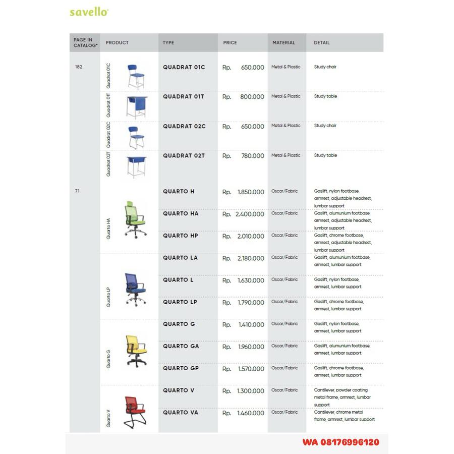 Kursi Kantor Savello QUADRAT 01C 01T 02C 02T & QUARTO H HA HP LA L LP G GA GP V VA