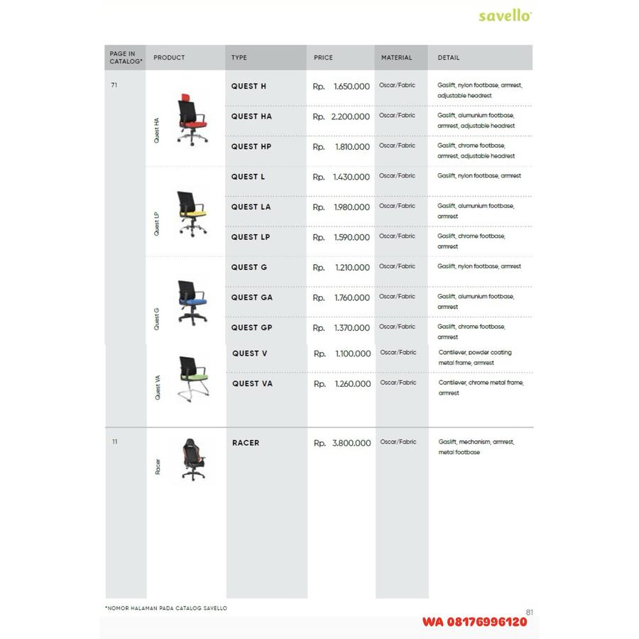 Kursi Kantor Savello QUEST H HA HP L LA LP G GA GP V VA & RACER
