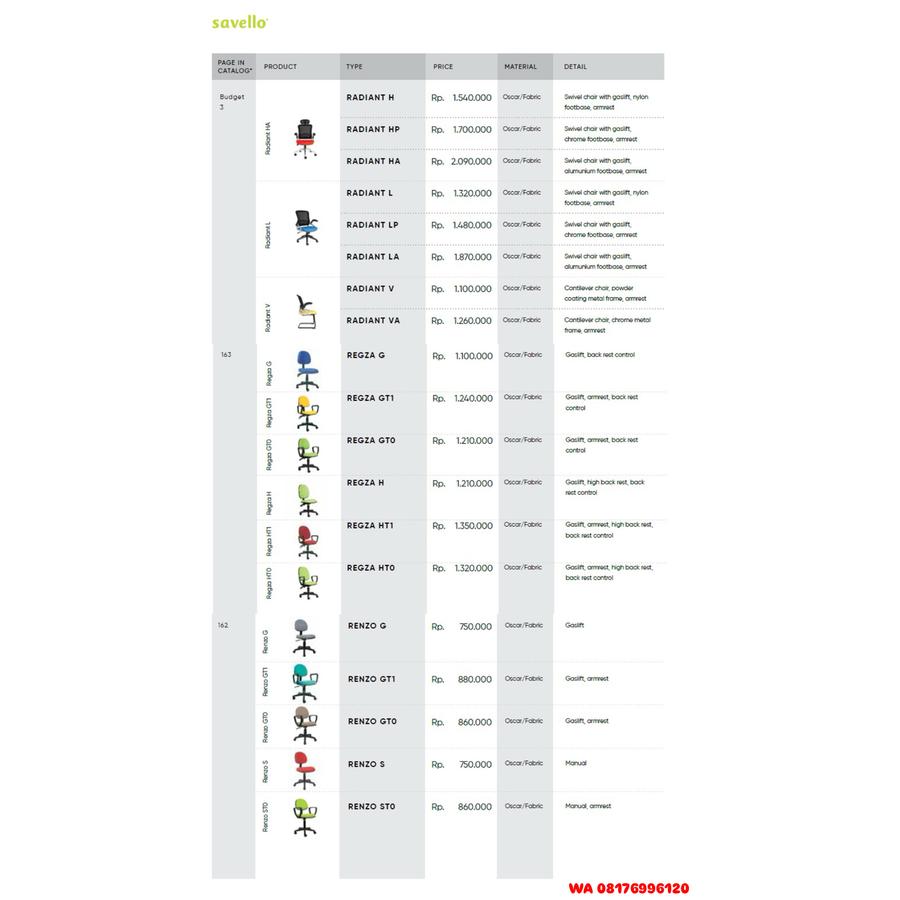 Kursi Kantor Savello RADIANT H HP HA L LP LA V VA, REGZA G GT1 GTO H HT1 HTO, RENZO G GT1 GTO S STO