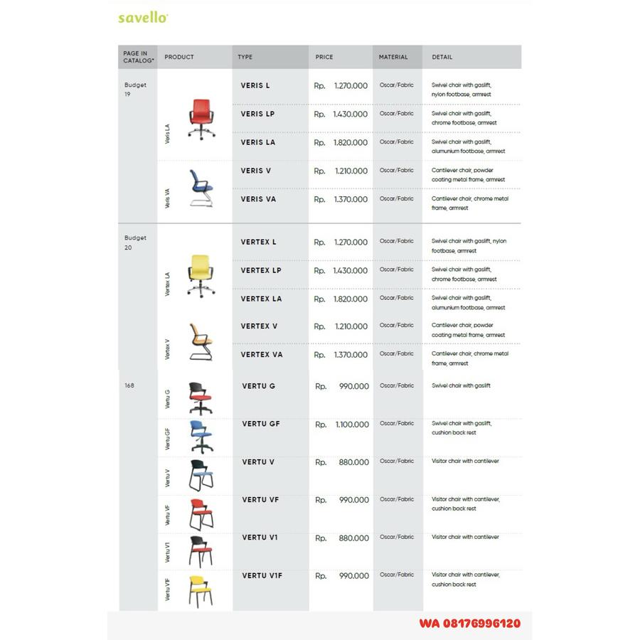 Kursi Kantor Savello VERIS L LP LA V VA, VERTEX L LP LA V VA, VERTU G GF V VF V1 V1F